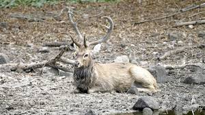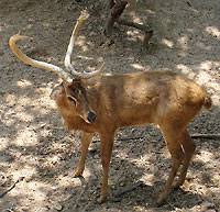 * เขาพิเศษ: เขาของตัวผู้จะมีกิ่งที่ยื่นออกมาทางด้านหน้าทำมุมโค้งต่อเนื่องไปทางด้านหลัง ไม่หักมุมเหมือนกวางชนิดอื่น